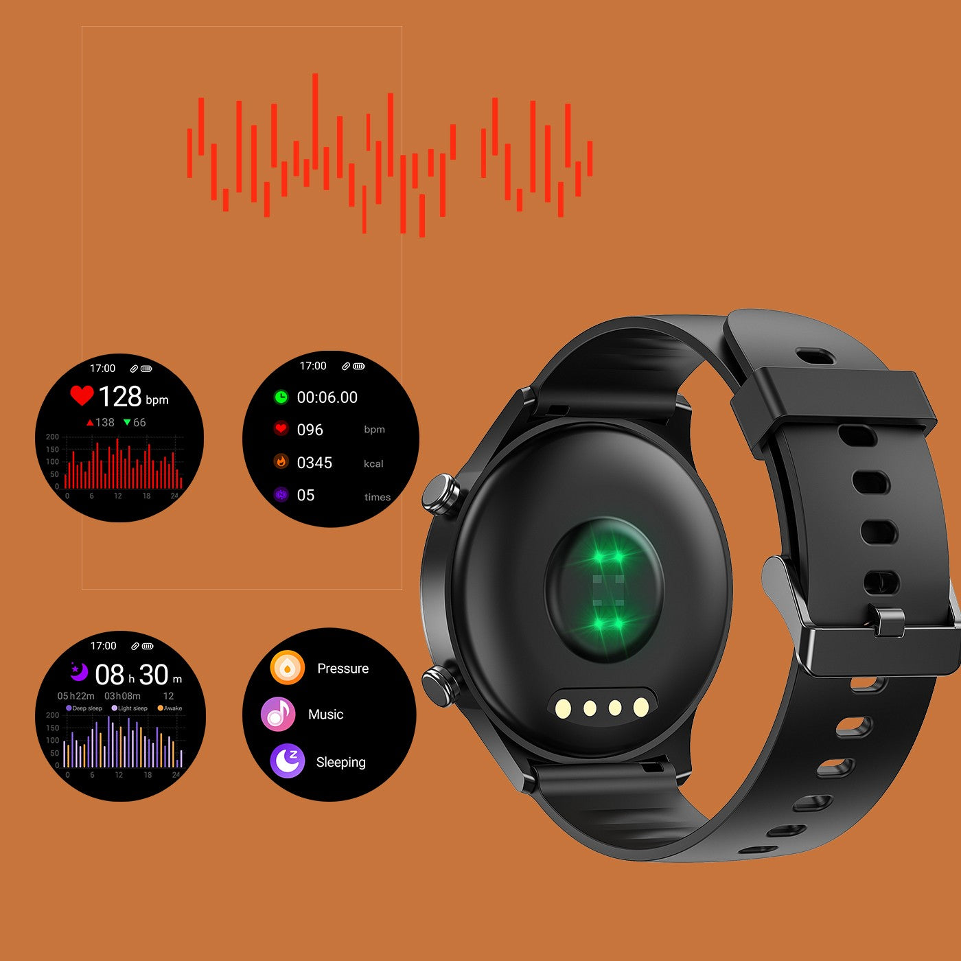 Mantenha sua saúde medindo o oxigênio no sangue no smartwatch Tranya. Verifique as quantidades de oxigênio na corrente sanguínea a qualquer momento. Meça seu nível de oxigênio no sangue com um sensor avançado e um aplicativo. Verifique seus batimentos cardíacos e faça um ECG sempre que quiser.