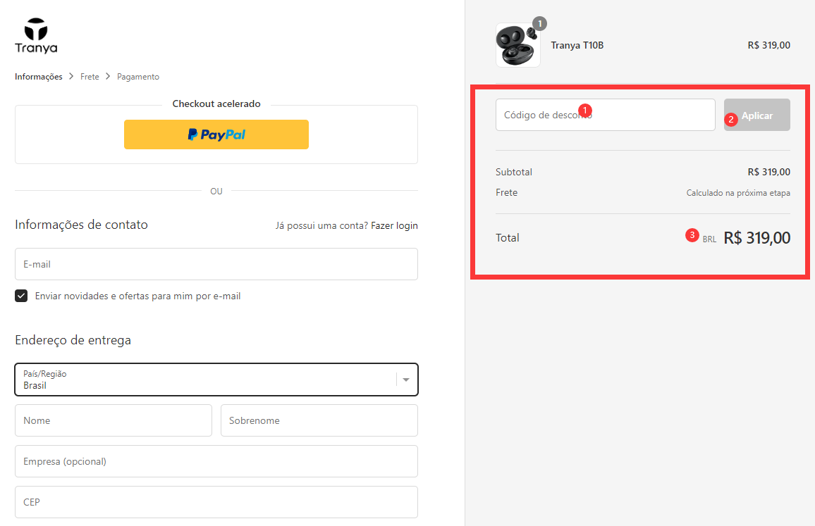 Use image with text to give your Digite seu código de desconto no espaço em branco, clique em "Aplicar", o preço total será reduzido.