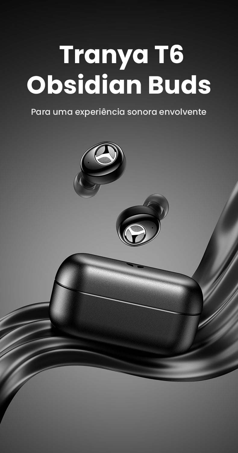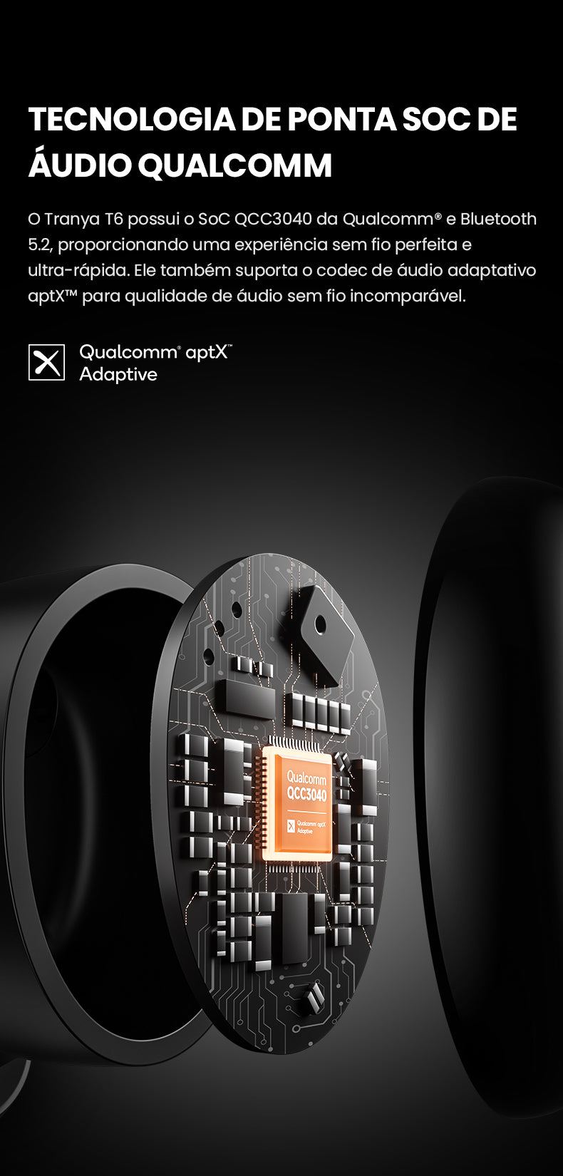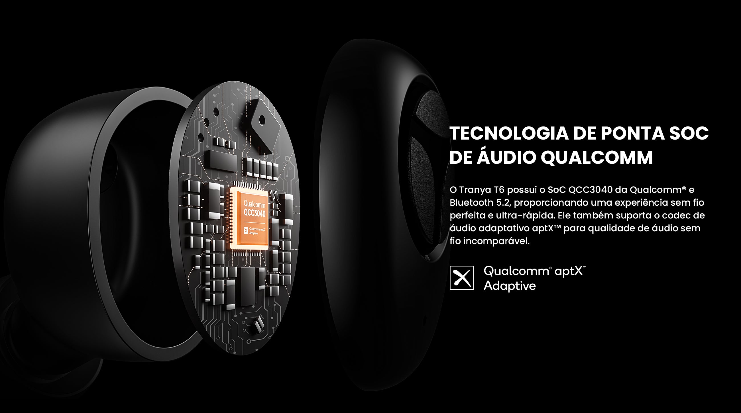 Tranya T6® Produto Original, Sem Taxas Alfandegárias, Frete Grátis, Certificado pela Anatel, Qualcomm QCC3040, Qualidade de Som Superior, Suporte a Aplicativo